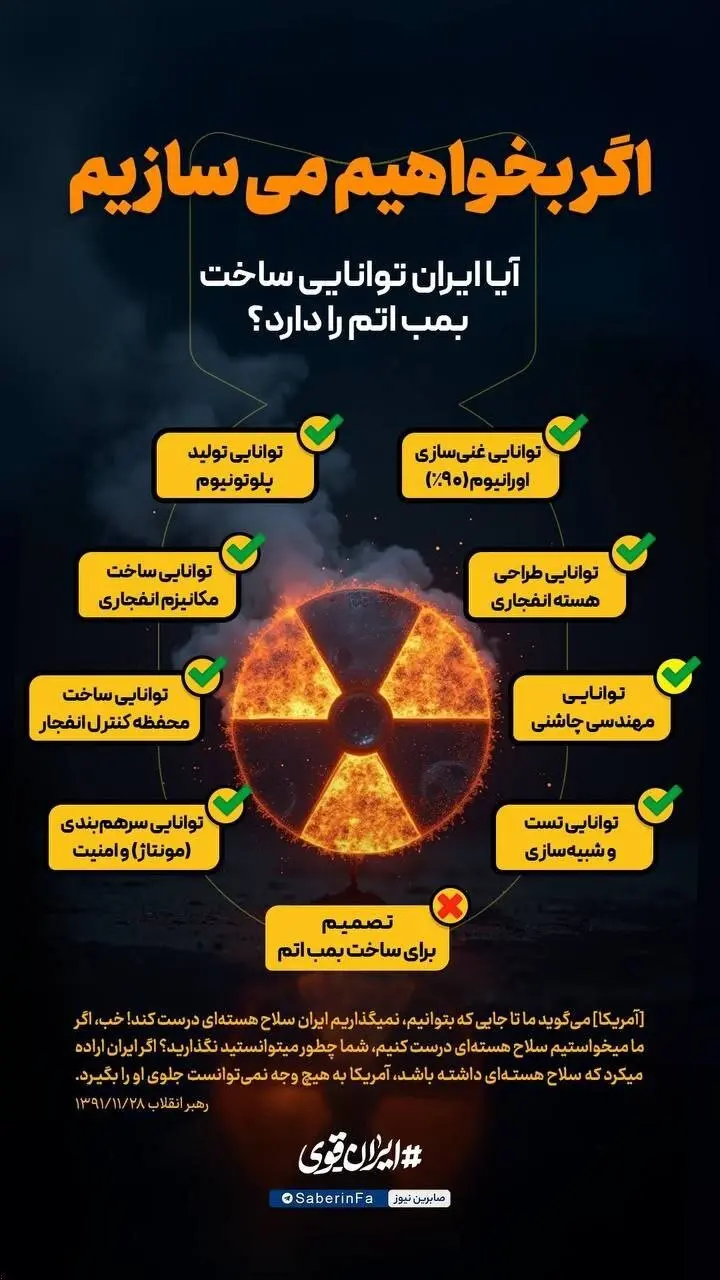 تکتم نیوز/اینفوگرافیک زیر پاسخی به این سوال است که آیا ایران توانایی ساخت بمب اتم را دارد یا خیر؟