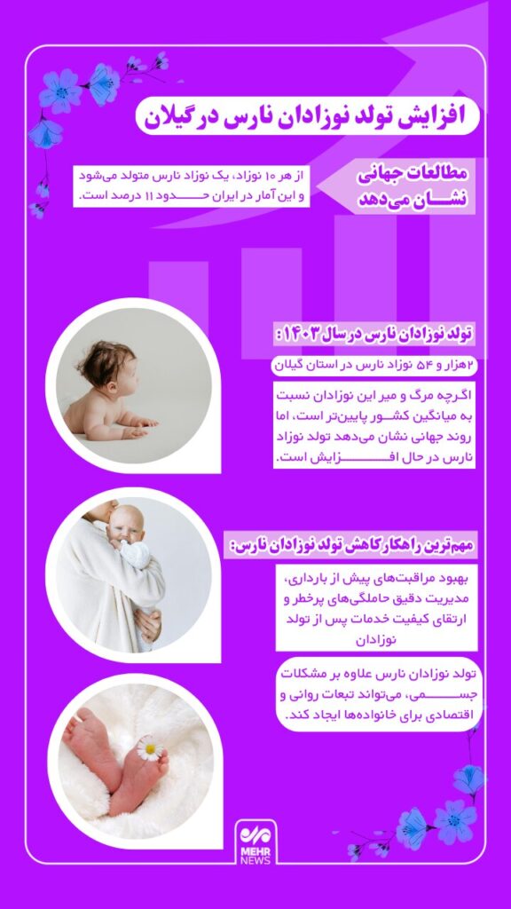 ۷ تکتم نیوز/آمار سال گذشته نشان میدهد تولد نوزادان نارس در گیلان رو به افزایش است، اگرچه مرگ و میر پایینتر از میانگین کشوری است؛ پیشگیری و مراقبتهای دقیق ضروری است.