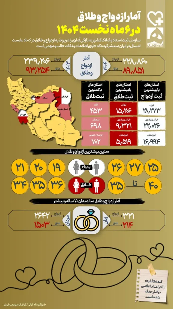 ۸ تکتم نیوز/جدیدترین آمار ازدواج و طلاق در کشور به روایت سازمان اسناد و املاک را در اینفوگرافیک ببینید.
